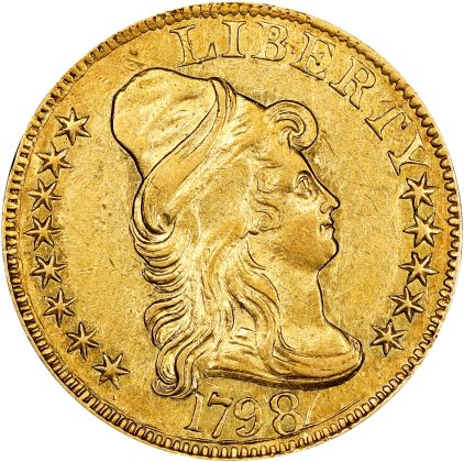 One major returning rarity will be James A. Stack, Sr.’s 1798 Small Eagle $5 gold piece. Last sold in B. Max Mehl’s 1946 auction of the William Cutler Atwater Collection, it is the last of the five privately owned specimens to come to market in the 21st century. Now graded PCGS AU-53 CAC CMQ, it is one of nine coins in this offering to appear in the popular book, 100 Greatest U.S. Coins. It is also the sole example certified by CAC and CMQ. The last decade has seen the value of this extremely rare early half eagle climb from $1 million to $2 million to $3 million each time an example has appeared at auction.