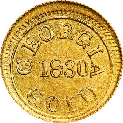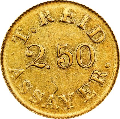 No fewer than 28 Territorial gold coins are included in this offering, nearly all of which have provenances dating to numismatic auctions from the 1910s through the 1940s. Half of the coins are from the collection of Hillyer Ryder; better known as a student of colonial numismatics, Ryder also assembled a world class but little known collection of U.S. Federal and Territorial gold coinage. The Territorial selection starts at square one with the first Territorial gold coin: an 1830 Templeton Reid $2.50 gold piece, graded PCGS AU-58 CAC CMQ that last appeared publicly in Henry Chapman’s 1924 sale of the Arthur Nygren Collection.